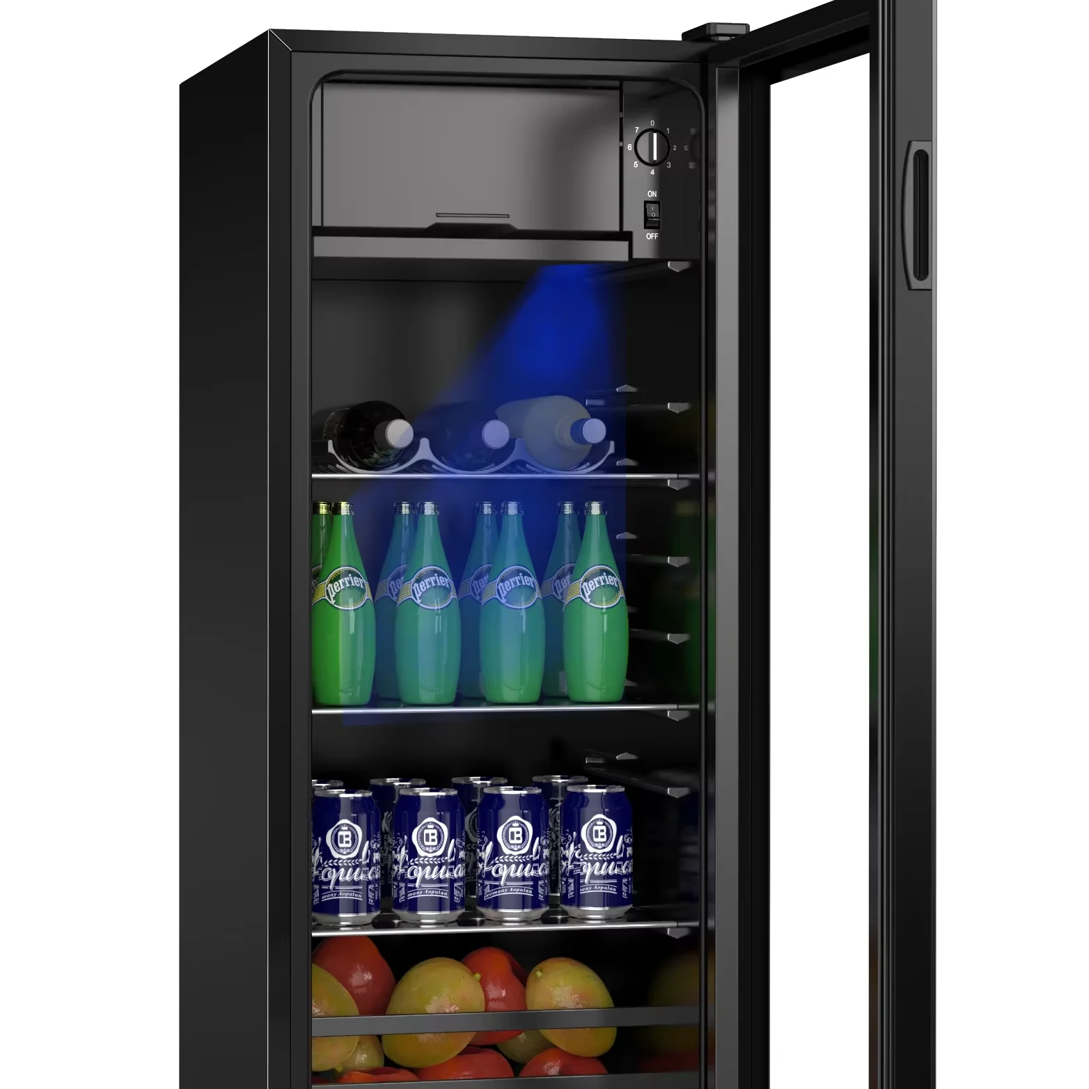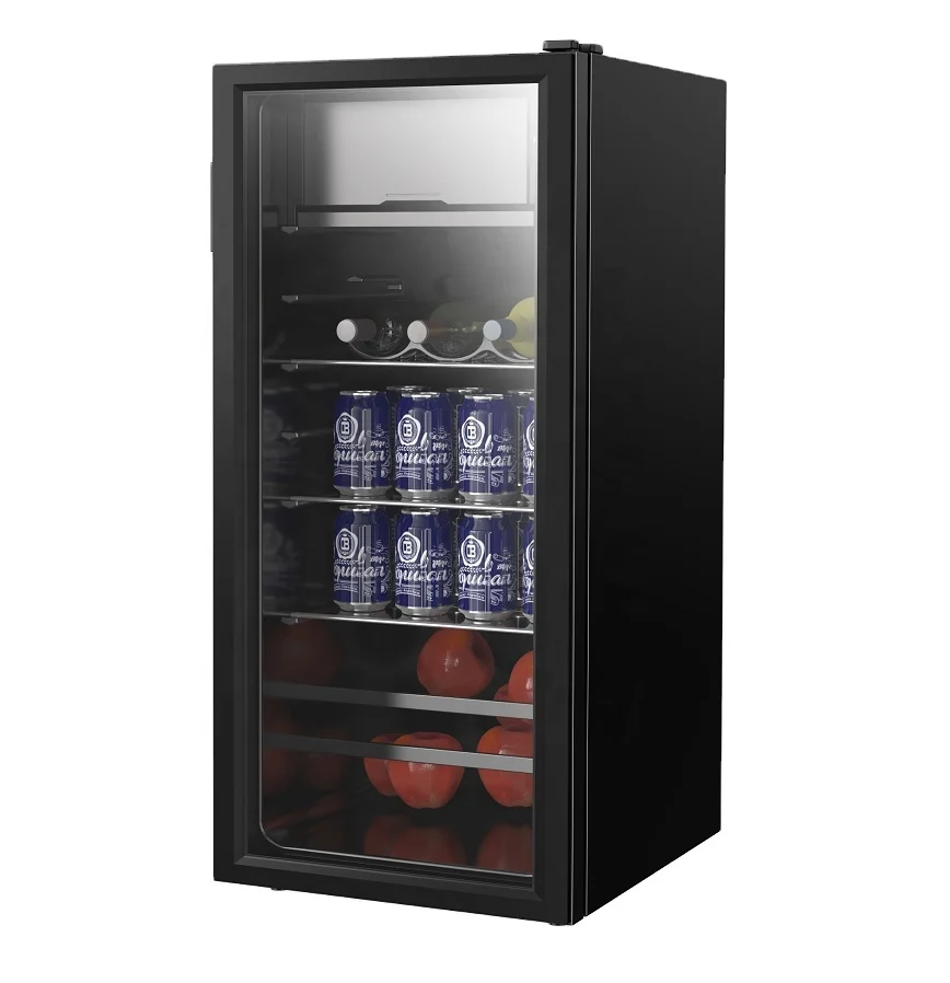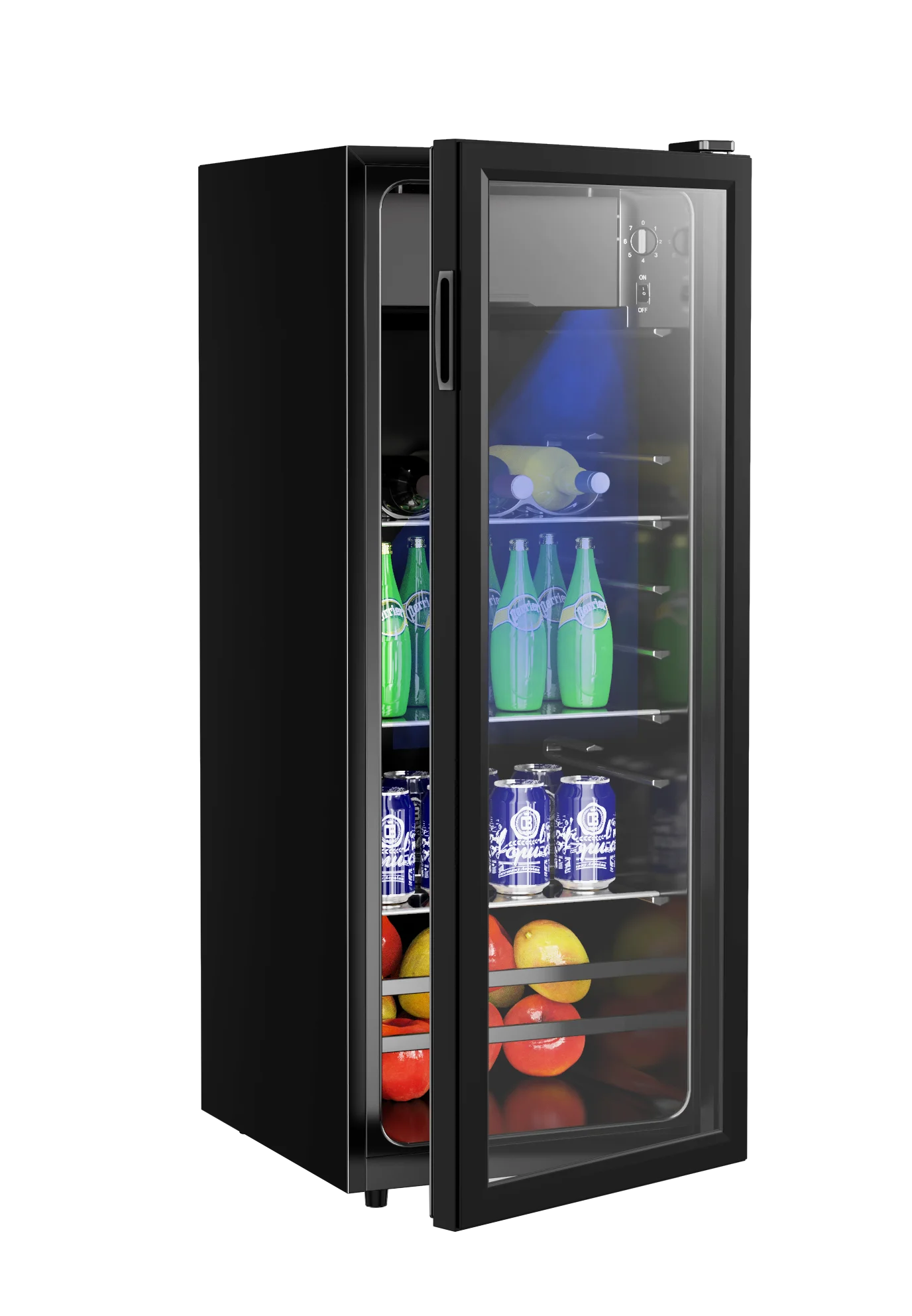 118L Mini Glass Door Single Door Refrigerator Beverage Cooler with Freezer Mini Fridge for Home and Hotel Use